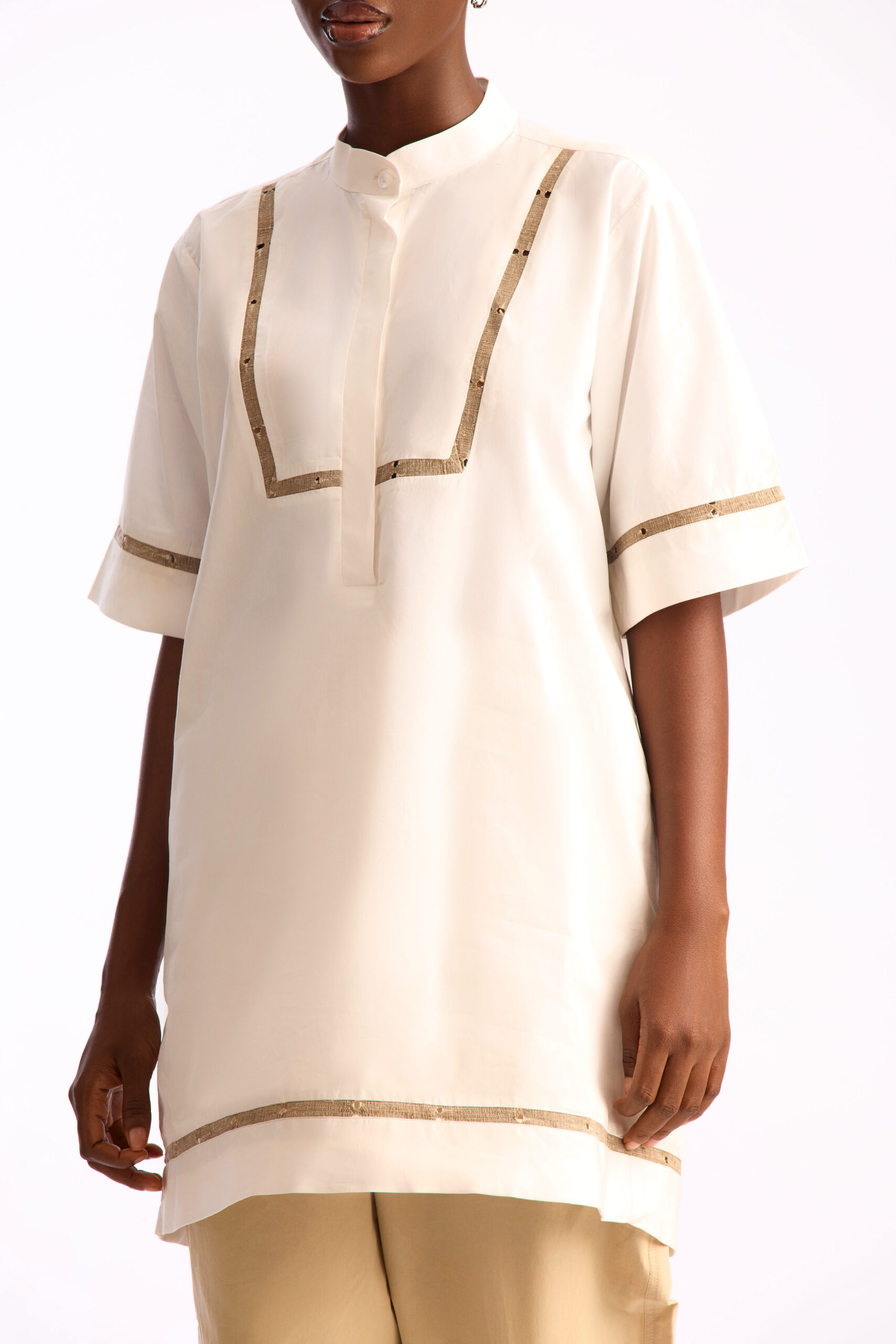 Ivory Tunic Shirt with Handwoven Aso Oke Trim