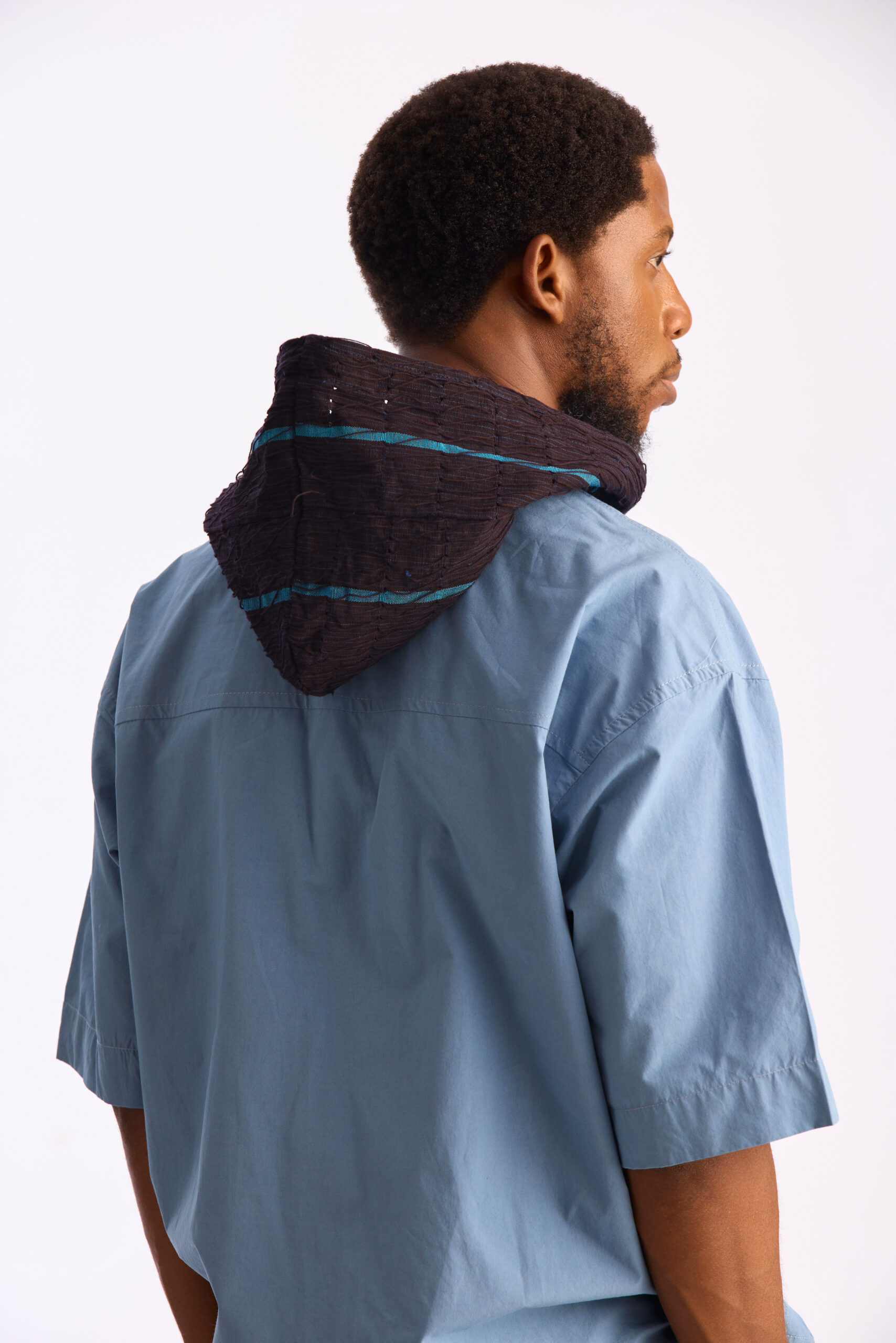 Organic Cotton Hooded Shirt with Aso Oke Hood